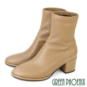 女靴 真皮短靴 貼腿靴 高跟 素面 小羊皮 萊卡 真皮【GREEN PHOENIX 波兒德】U21-23523leica收購